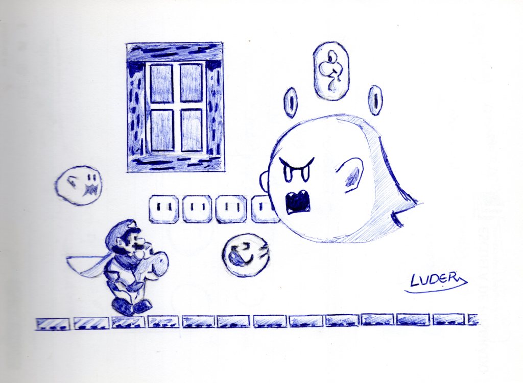 Bueno, en este dibujo he logrado hacer posible lo imposible: hacer entrar a Yoshi y Mario (con capa incluida).