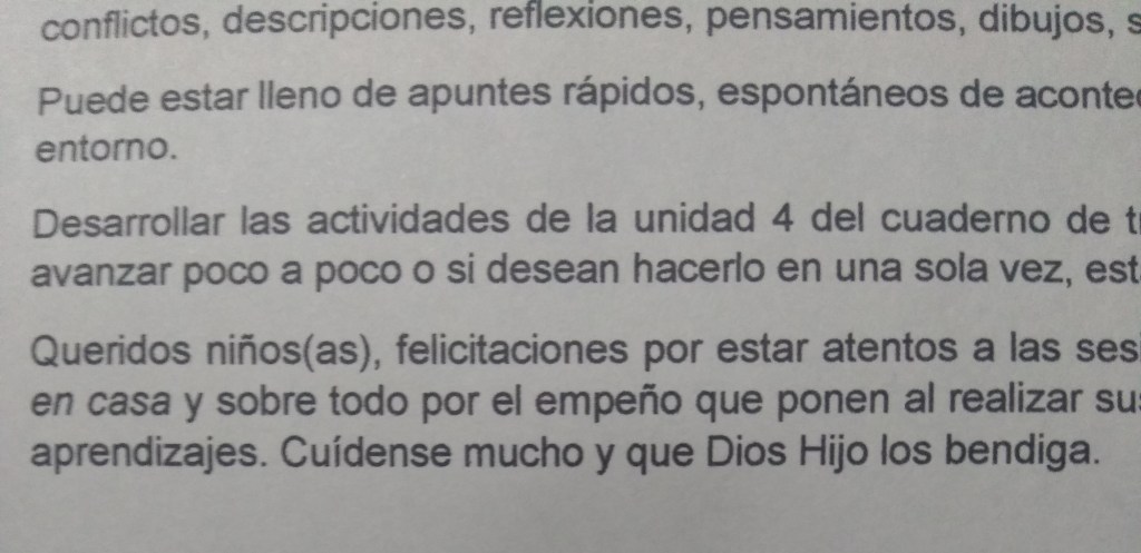 Un señor de aspecto muy humilde y con unos cincuenta años a cuestas, viene dos veces por semana a la tienda para imprimir las tareas y lecciones que los profesores le dejan, supongo, a su hijo o hija, que pertenece al cuarto grado de primaria, sección B, de un colegio cuyo nombre desconozco. Él me reenvía por guasap los textos e imágenes que, previamente, le han remitido los docentes. Luego pasa a recoger las impresiones, ataviado con mascarilla y protector facial.